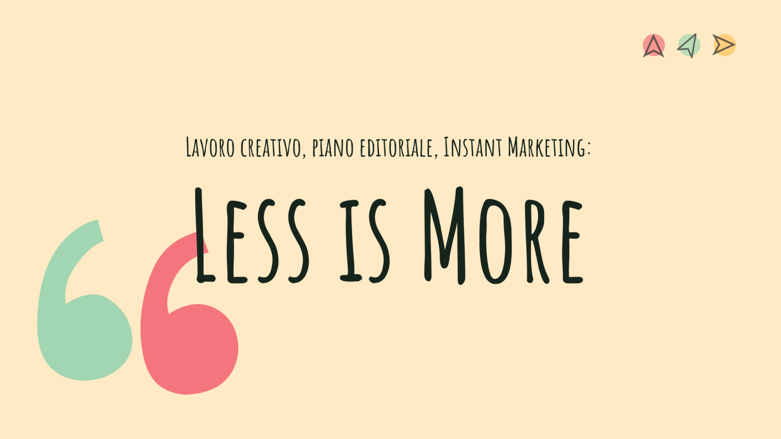 Inizia da qui il mio percorso da freelance, dal primo insegnamento che fin dal 2009 accompagna e definisce in ogni commessa che apro, ogni progetto che seguo: meno è meglio, less is more. Soprattutto se la tua attività è una PMI e non una grande multinazionale.